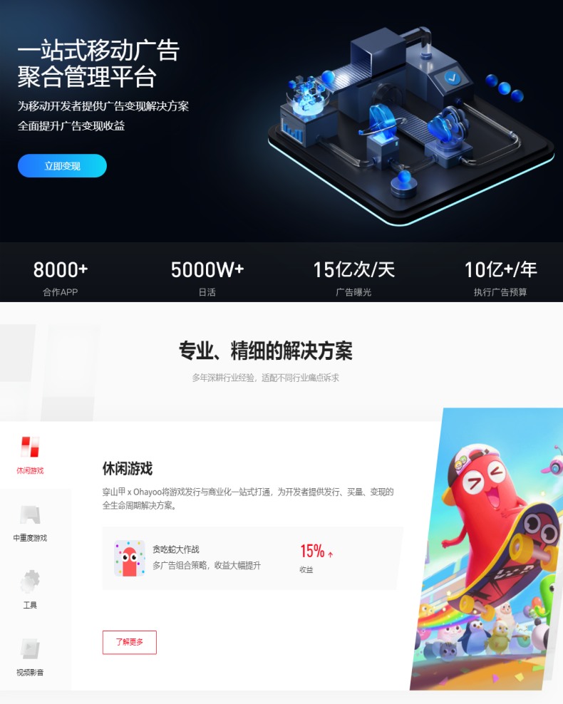 目前,大多数APP都会选择接入穿山甲广告联盟,平台注册流程清晰,提供广告位模板,信任度高,收益可观。