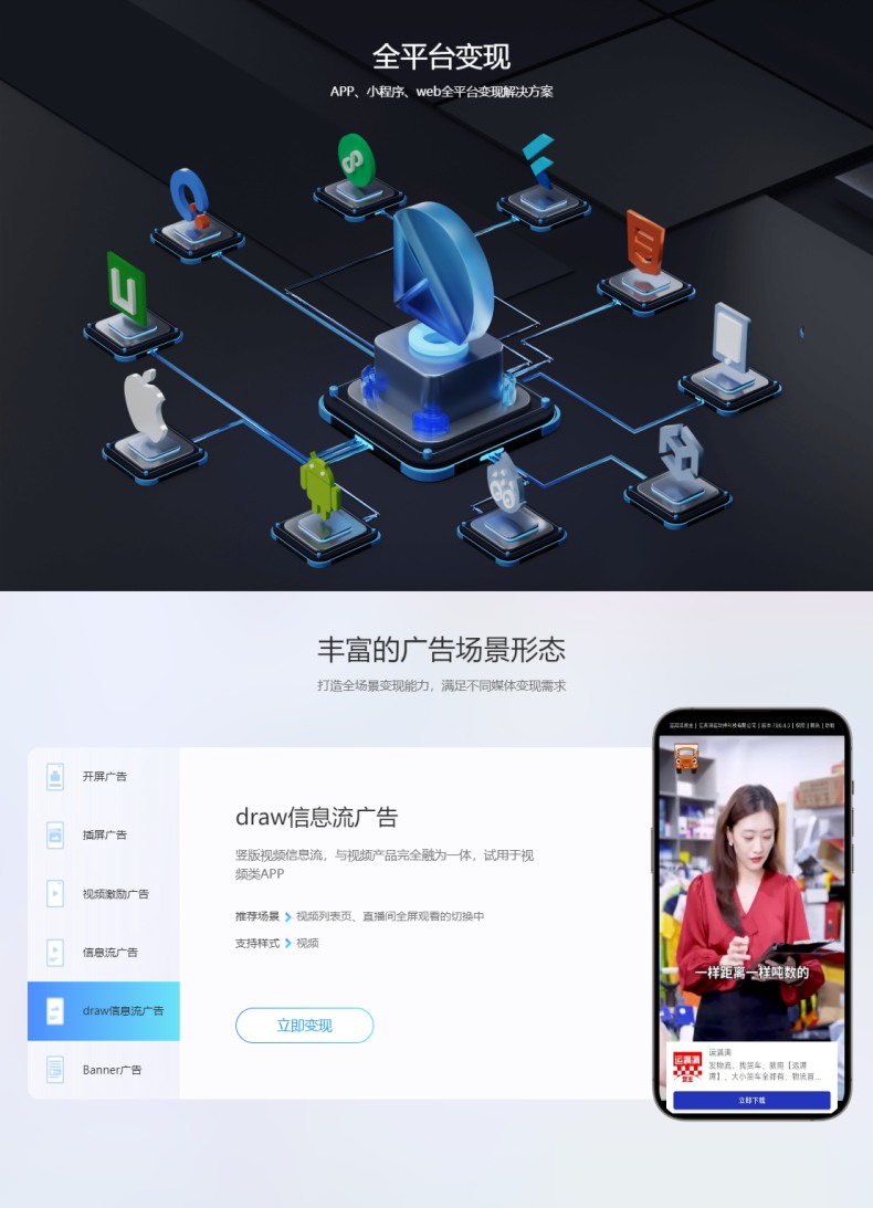 广告联盟项目中,小程序只能接单一的广告商APP 可以同时接多家的广告。